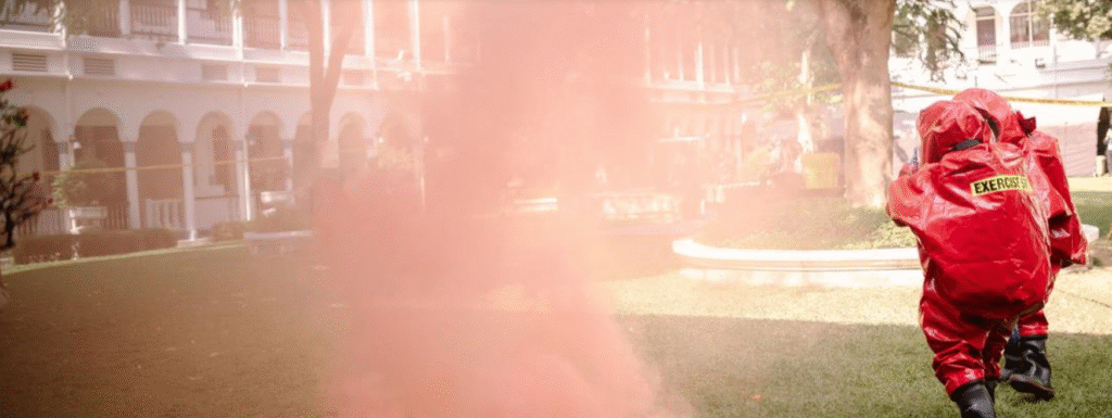 This is what a fictional chemical terrorist attack simulation exercise looks like.